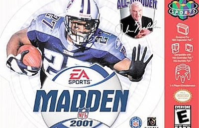 As part of the popular Madden NFL series Madden NFL 2001 delivers the usual stellar attractions you've come to expect, along with some new features. Along with updated player rosters (licensed by the NFL and NFL Players' Association), EA Sports has included detailed uniforms, easy-to-use menus, custom modes, cool instant replays, and options that you can adjust to your liking. MADDEN NFL 2001 even includes all members of the NFL Coaches Club, complete with their personal playbooks, individual voices, and signature coaching styles. Be sure to make MADDEN NFL 2001 part of your pro football gaming season!